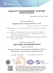 青島(dǎo)海空(kōng)壓力容器有限公司成立於1996年,目前是江北領(lǐng)先的中低壓氣體儲存類容器廠家,作為國際知名空(kōng)壓機廠家的(de)戰略(luè)合作夥伴,憑借優異(yì)的品控體係和完善(shàn)的服務體係,產品遠銷(xiāo)世界各(gè)地,並且得到(dào)客戶的高度好評。“海空”牌壓力(lì)容器已廣泛應用於國內(nèi)各大核(hé)電站、航天、生物研究、醫療、製藥、食品和國外各大電廠(chǎng)等領域,其中不鏽(xiù)鋼壓力容器的製造工藝技術(shù)已處(chù)於業內(nèi)領(lǐng)先水平。