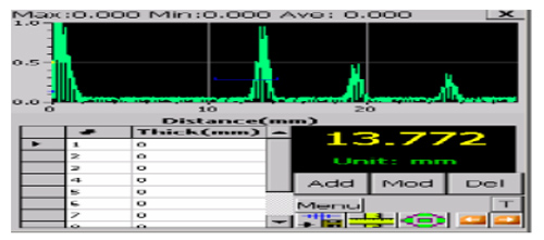 根(gēn)據超聲波脈衝反(fǎn)射原理來進行厚度測量的,當探頭(tóu)發射的超(chāo)聲波脈衝通(tōng)過被測物體到達材(cái)料分界麵(miàn)時,脈衝被反射回探頭,通過精確測量超聲波在材料中(zhōng)傳播(bō)的時間來確定被測(cè)材料的厚度。