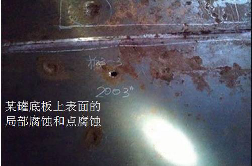 儲罐底板的介(jiè)質側一般腐蝕(shí)的會比壁板更加嚴重,有時甚至會腐蝕(shí)穿(chuān)孔而出現泄漏現象。這(zhè)些腐蝕主要源於灌內的沉積(jī)水,沉積(jī)水中的硫化物(wù)、氯化物、氧等物質會(huì)與金屬發生反應,造成的電化學腐蝕。