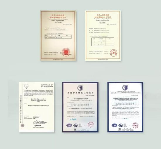 三是(shì)看產品銘牌。在銘牌上應注明(míng)生產企業、產品的(de)編號、重量、容積大小、所承受的最高壓力和工作壓力以(yǐ)及水壓測試的壓(yā)力,還需要(yào)標明(míng)該儲氣罐的介質。