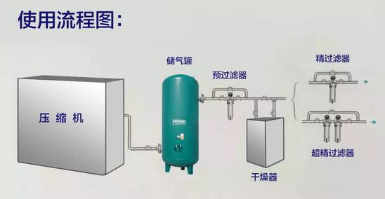 可以在(zài)儲(chǔ)氣罐(guàn)安裝一個氣水分離器(qì),將壓縮(suō)空氣中的氣(qì)水分離。
